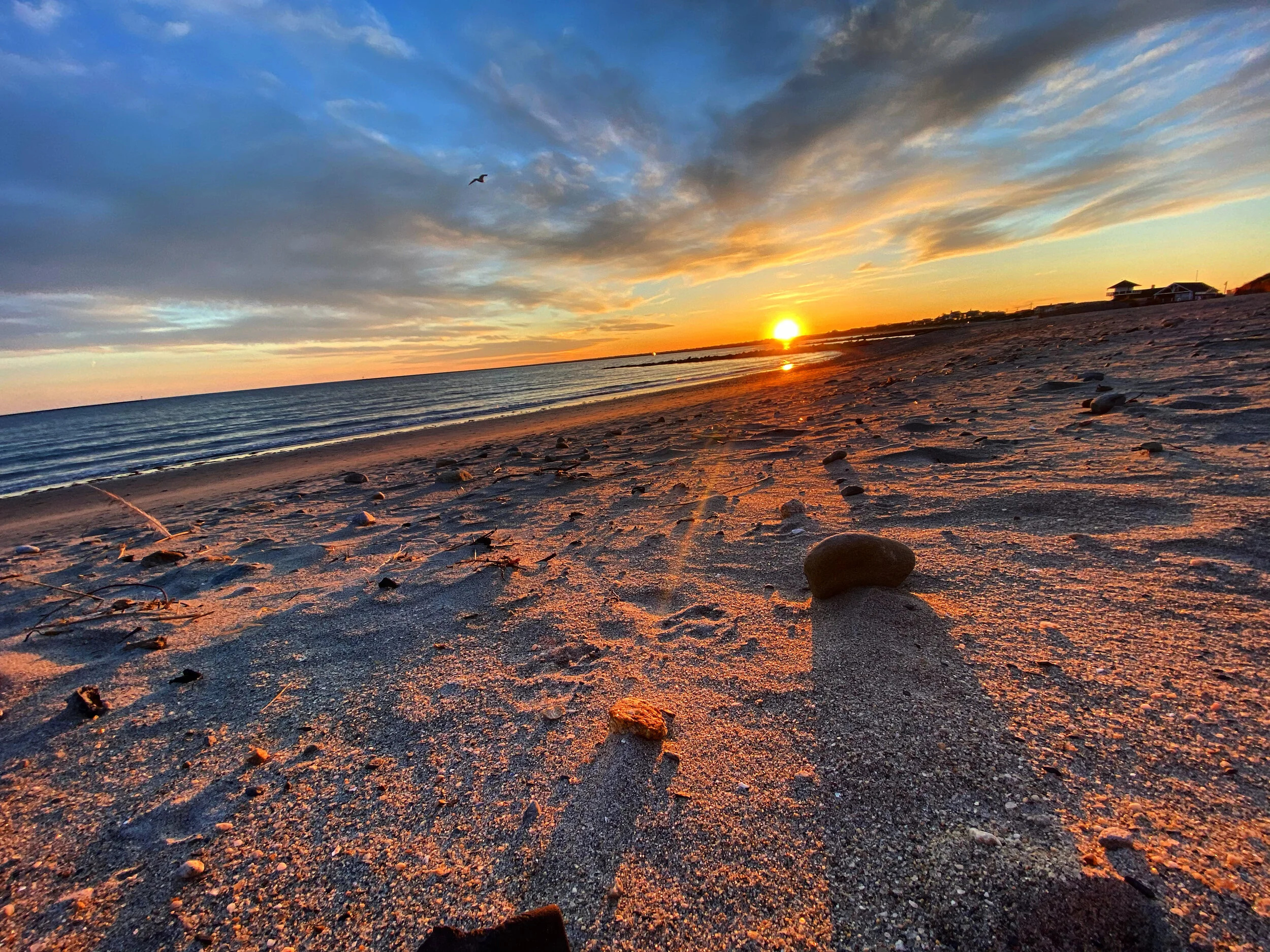 September 2017. The beach is empty and the soft morning sunlight kisses the sea. Billions of glittering specks of light dance across the water. It’s as if the waves are shrouded in diamonds, endlessly sparkling in the dewy haze of summer sunrise. The sky is cast an array of golden shades with pink and purple hues outlining the atmosphere, grazing the underbellies of the clouds. Nestled in the sand, cross-legged and silent, there is girl. She is me.